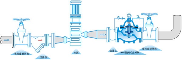 300X緩閉止回閥由主閥、單向閥、針閥、球閥、微形過濾器和壓力表組成水力控制接管系統(tǒng)。利用水力自動操作,可使主閥的開啟或關(guān)閉速度。防止水鍾水擊的產(chǎn)生,以達(dá)到緩閉消聲的效果。