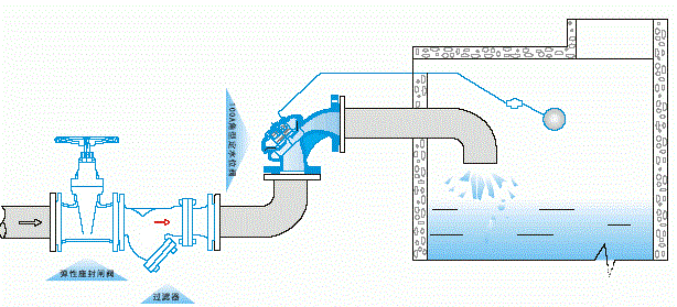 100A角型定水位閥是一種隔膜式調(diào)節(jié)水箱和水塔液面高度的閥門。閥門由一特殊強(qiáng)化尼龍膜片將其分為上下兩個(gè)腔室,當(dāng)液面達(dá)到設(shè)定位置時(shí),浮球?qū)чy關(guān)閉,上腔壓力大于下腔,閥門關(guān)閉,即停止供水.當(dāng)液面下降超過預(yù)設(shè)位置,浮球?qū)чy開啟,上腔壓力小于下腔壓力,閥門開啟.閥門向池內(nèi)供水。角型定水位閥安裝方便,可省去管道彎頭,節(jié)省安裝空間。該閥保養(yǎng)簡(jiǎn)單、靈活耐用、液位控制準(zhǔn)確度高,水位不受水壓干擾且關(guān)閉緊密不漏水,性能可靠、成本低。浮球可隨水池的高度和距離安裝。